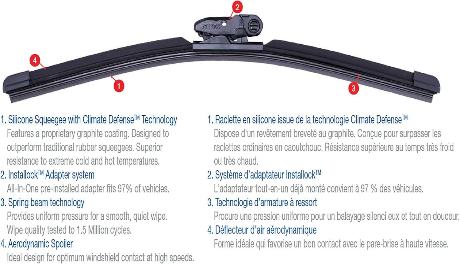 Rain-X Silicone AdvantEdge wiper Blades lasts 2x longer than traditional wiper Blades. This advance TECHNOLOGY features a precision engineered silicone rubber squeegee, with a proprietary graphite coating, specially formulated for use in wiper Blades to provide ultimate durability and extreme all-weather performance.